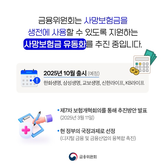 - 2025년 10월 출시(예정) : 한화생명, 삼성생명, 교보생명, 신한라이프, KB라이프