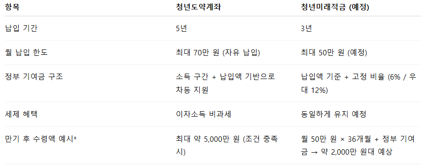 3) 청년도약계좌 vs 청년미래적금 — 핵심 비교 포인트